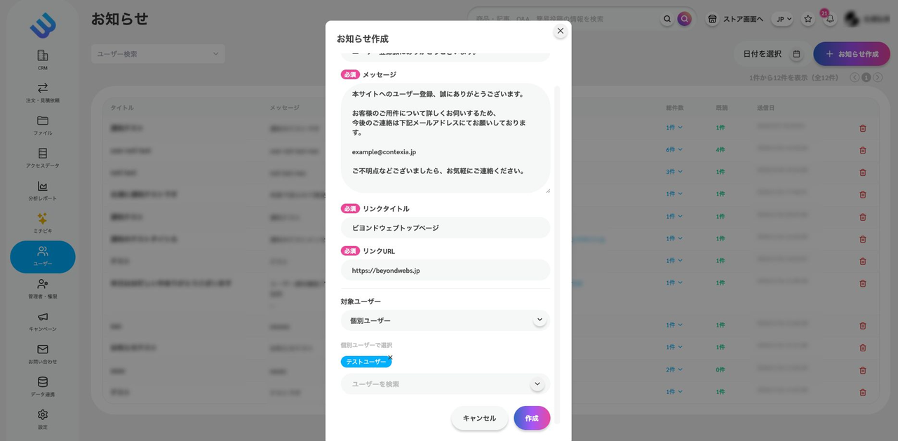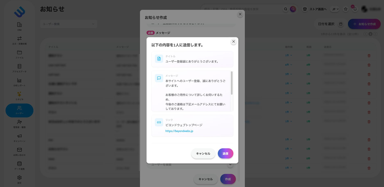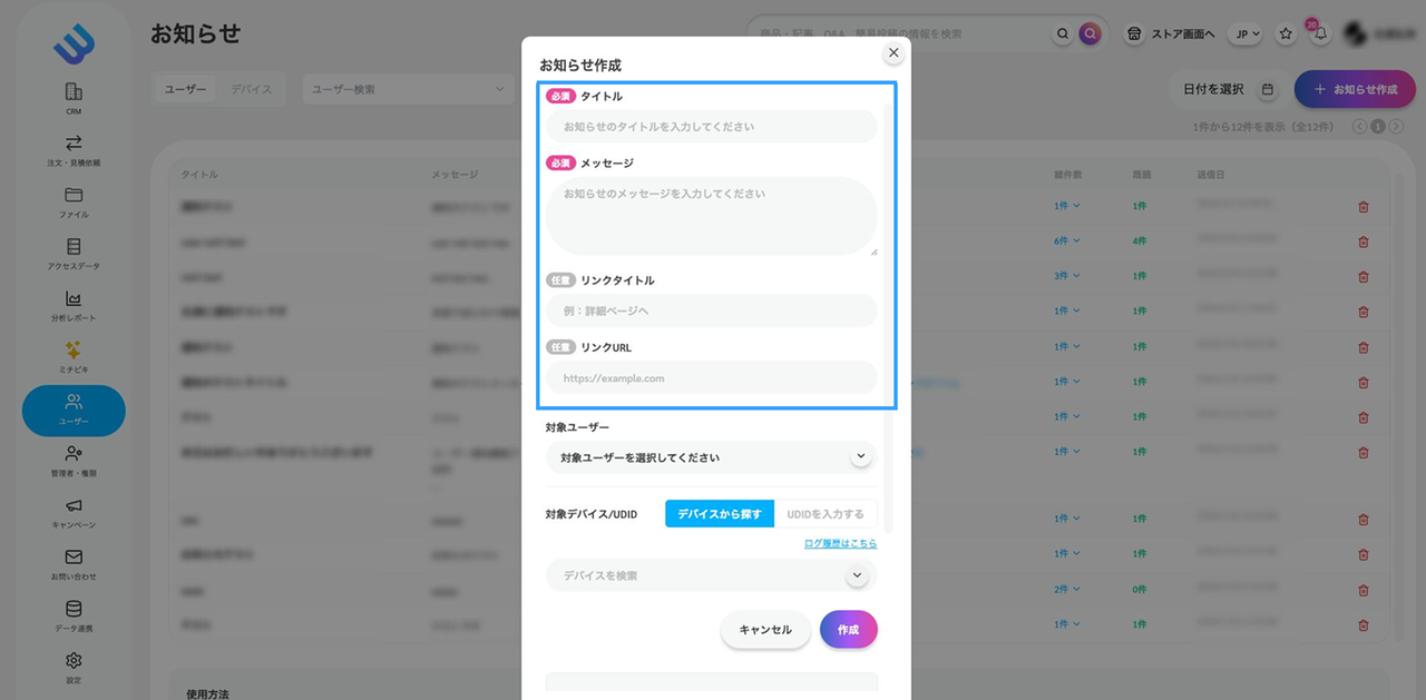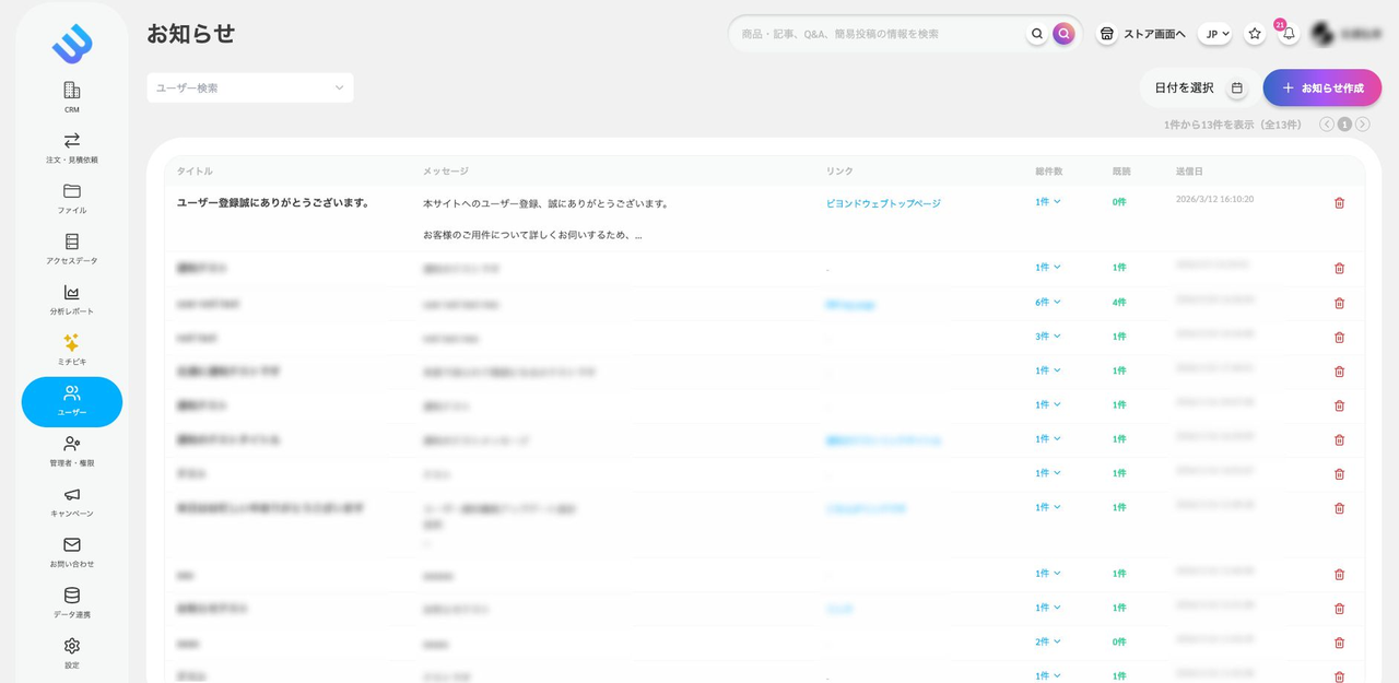 訪問者へ情報を届けたい場合に活用できるのが「お知らせ機能」です。管理者からユーザーへ通知を送信し、ユーザーとの接点を作ることができます。本記事ではお知らせ機能の使い方を解説します。