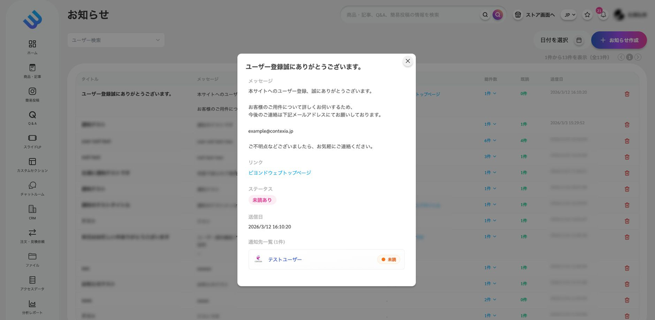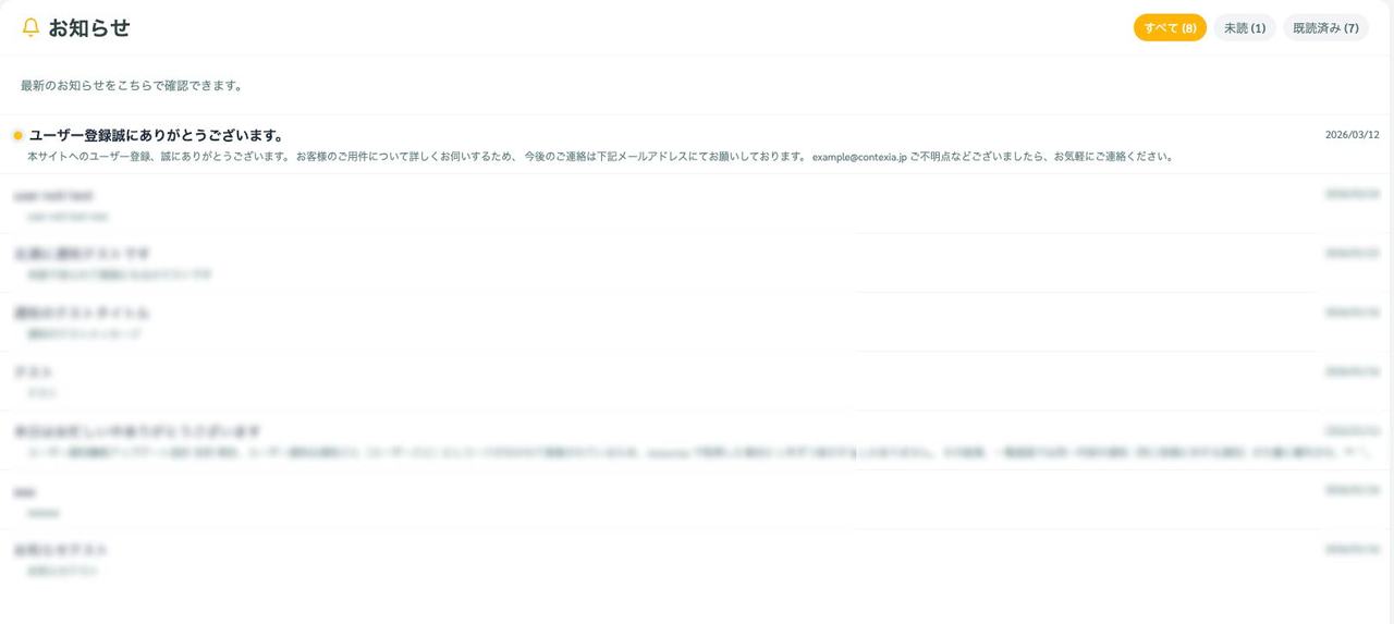 送信が完了すると、お知らせ一覧に先ほど作成した通知が追加されます。